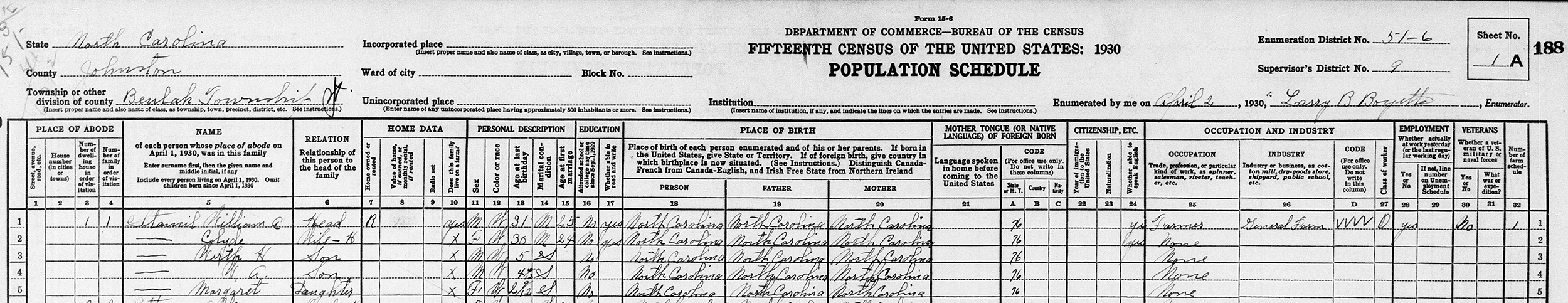 An unnamed infant son was stillborn on September 23, 1932. Dr. Grady from Kenly delivered Bill, Margaret, and the stillborn son.