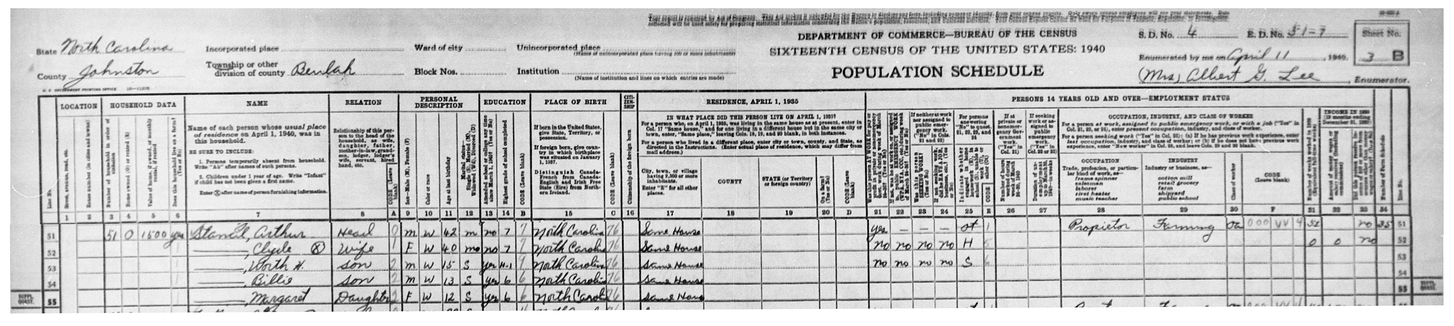 Arthur and Clyde had four children, all born at home. Their oldest son, Worth "Tom" Hayes Stancil, was born on May 16, 1924, delivered by Dr. Hayes of Fremont. Fifteen months later, William "Bill" Arthur Stancil Jr. was born on August 8, 1925. Their daughter Margaret followed twenty-two months later, born on June 22, 1927.